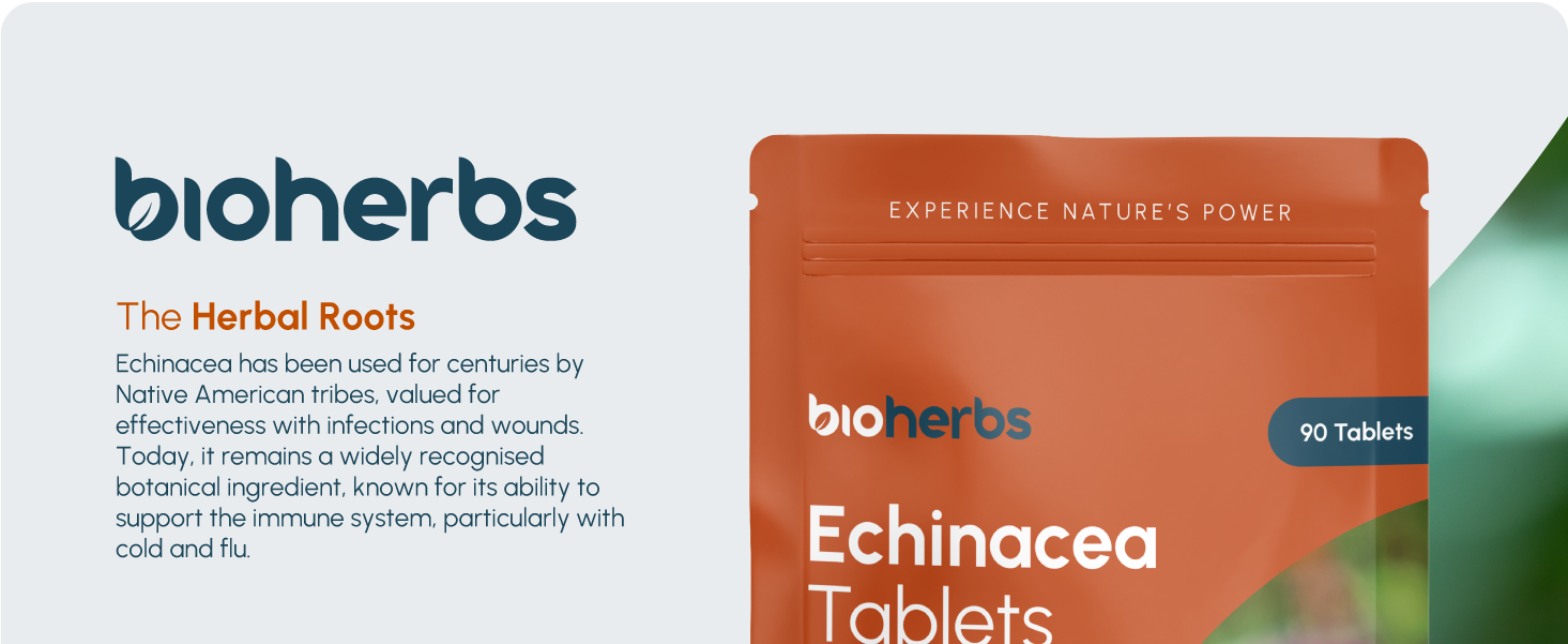 Echinacea has been used for centuries by Native American tribes, valued for effectiveness with infections and wounds. Today, it remains a widely recognised botanical ingredient, known for its ability to support the immune system, particularly with cold and flu.