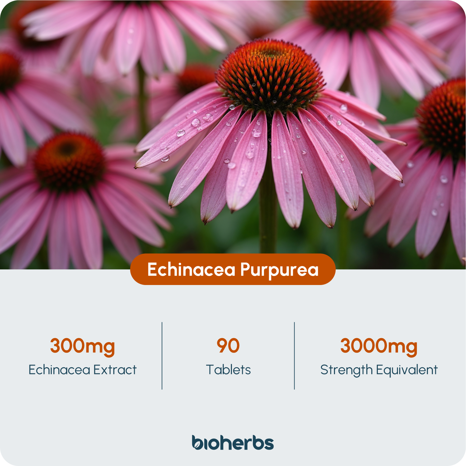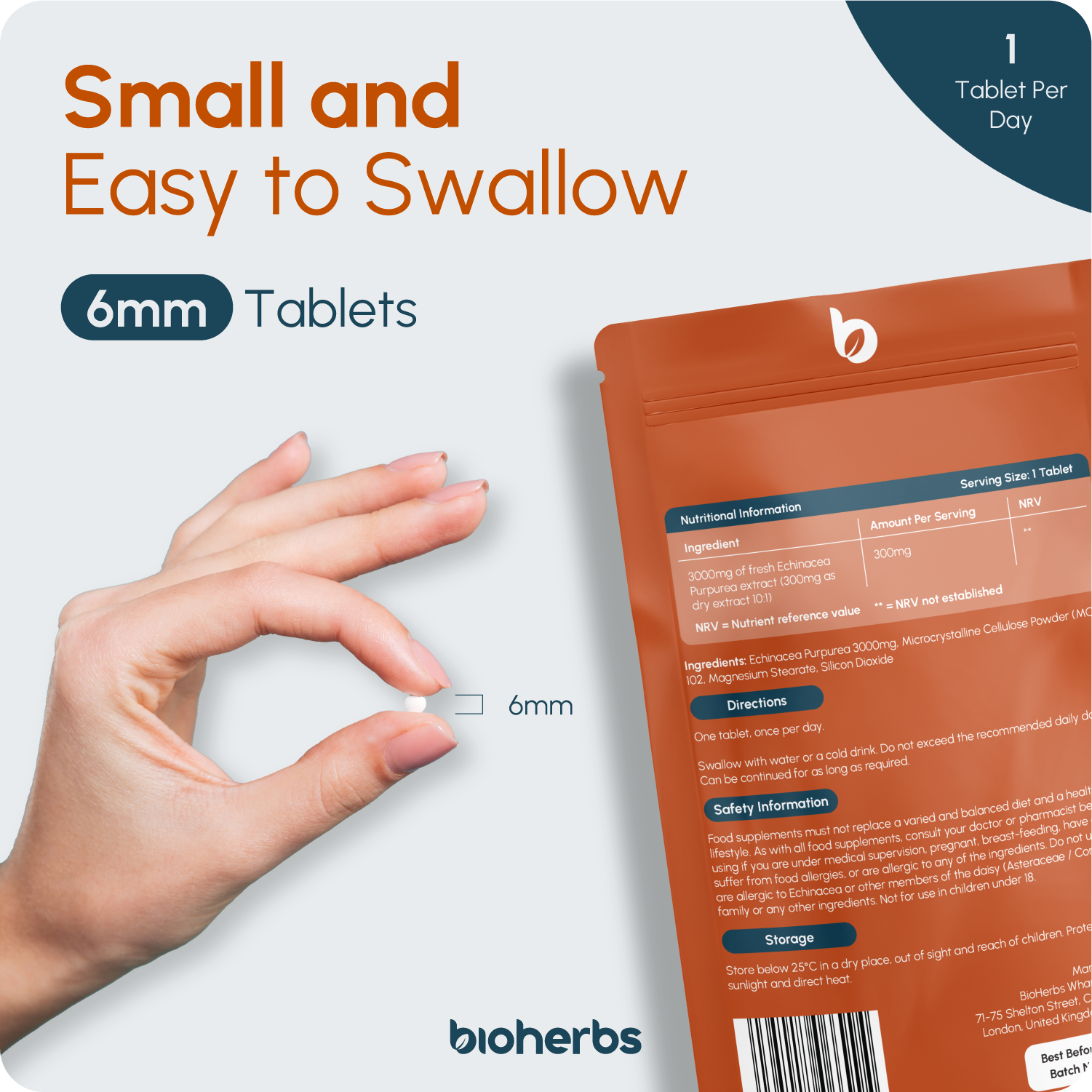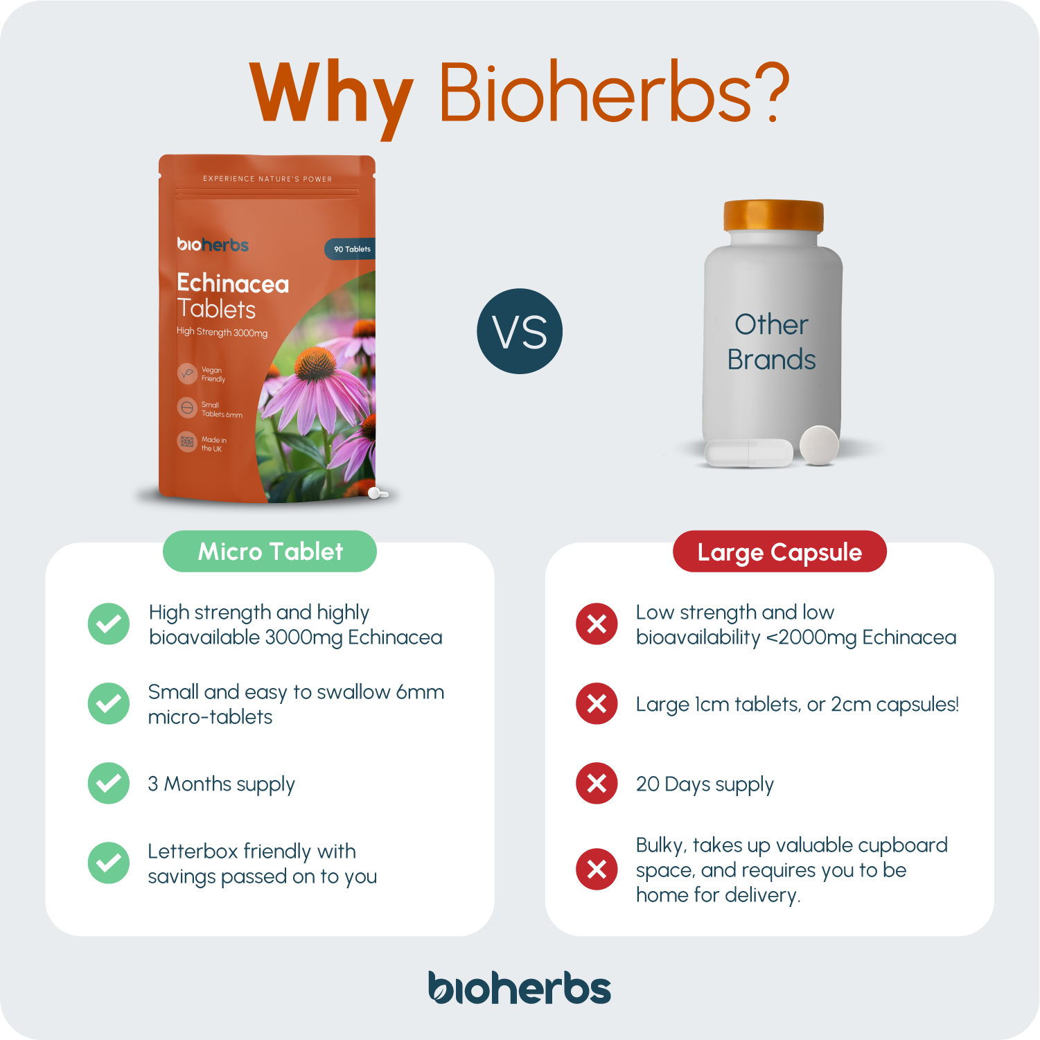 BioHerbs Echinacea Tablets High Strength 3000mg - 90 One-Per-Day Micro Tablets (3-Month Supply)
